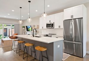 Modern farmhouse charm meets fresh city living in this beautifully designed newer construction home—one of just four thoughtfully crafted residences in the heart of Englewood’s vibrant South Broadway scene. With 3 bedrooms (4th non-conforming in basement) and 4 baths, this light-filled home lives large thanks to a wide, open-concept main floor and stylish finishes throughout. The kitchen is a total standout with a 10-foot eat-in island, soft-close maple cabinetry, sleek backsplash, and modern pendant lighting—perfect for gathering with friends or cozy nights in. Gray-washed solid oak floors add warmth and sophistication, while custom horizontal railings lend a contemporary touch. Upstairs, the spacious primary suite features vaulted ceilings, a walk-in closet, and a private en-suite bath—your own retreat at the end of the day. A large basement offers flex space for any other rooms you would need - currently bedroom, gym, playroom, family room & office! Enjoy your fenced yard, front & back, covered patio & 2-car garage. No HOA, and just minutes from the Light Rail, parks, shops, and restaurants along South Broadway. Modern living, effortless style, and unbeatable location—it’s all here.