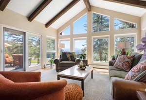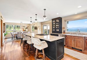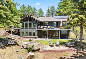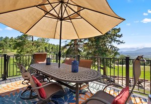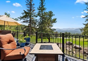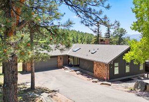 Showcasing views of Mt. Blue Sky and adjoining Genesee open space, this raised ranch style home is the ideal option for down sizing. Maple entry opens to the vaulted living room featuring a wall of glass framing Mt. Blue Sky views, maple flooring, exposed beams and moss rock gas fireplace that embodies classic mountain contemporary style. Impressive kitchen has an enormous center island plus high end appliances and wood cabinets designed to store all the cooking components to make a chef happy! Dining area opens to the kitchen and offers access to the wide synthetic view deck. A moss rock wall lines the entry to the spacious main level primary suite. Its private hot tub deck boasts beautiful snowcapped views and a recently 2022 replaced synthetic deck with metal railings. The roomy walk-in closet is supplemented by built-ins to help keep you organized while 3/4 primary bath features slab granite his/her vanities, and tiled walk-in shower with frameless door. Slab granite powder bath and laundry/mud room with roll-out drawers in pantry cabinet, and a utility sink complete the main level. Sky-lit stairway leads down to a big family room with a stacked stone gas fireplace, patio access and office space with west-facing views. Large bedroom suite includes a murphy bed and patio access. Two other good-sized bedrooms share a full bath with slab granite top. Cedar storage closet with shelving is a great inclusion. New features: Pella windows, beautiful alder doors, skylights, exterior siding, Lochinvar boiler, attic insulation, thermostats, 2018 Class A roof and gutters. Unique on the front range, Genesee offers underground utilities, community water and sanitation, 1,000 acres of maintained open space, 12+ miles of hiking trails, two clubhouses, two pool complexes, four tennis courts and two tot lots; 24 hour roving security guard; trash pick-up with recycling; plowing and maintenance of the private drives; plus numerous HOA sponsored community events year-round.