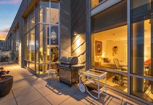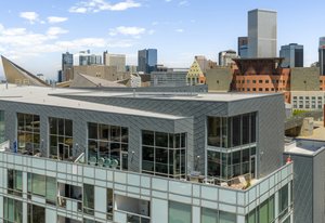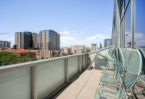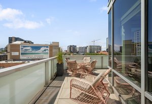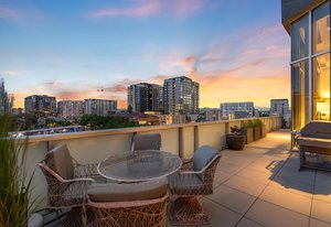 Residents enjoy access to a rooftop community garden terrace with an outdoor kitchen, lounge seating, and panoramic city and mountain views. An on-site concierge and security 7 days a week and guest suite is available for visiting friends and family, along with secure garage parking and private storage.