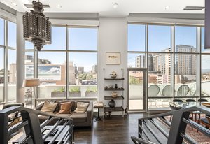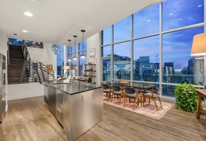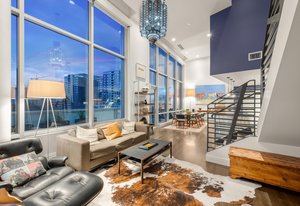 Penthouse luxury meets world-class design at the Museum Residences, a landmark development by world renowned architect Daniel Libeskind. This striking two-story corner residence offers luminous living under soaring floor-to-ceiling glass, framing sweeping mountain and city views. Rich hardwood floors and motorized shades throughout create a serene, elevated ambiance.