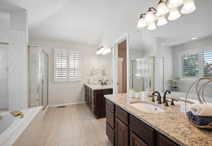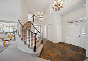 Imagine the ideal location, the perfect lot - your search ends here! The front yard is a masterpiece in and of itself, boasting mature landscaping that crafts a park-like ambience, backing to a lush greenbelt and vast open space you finally have the space from neighbors you have been looking for. This tranquil sanctuary teems with birds and occasional wildlife, making it a private haven where you enjoy nature's bounty. The colossal stone patio at the back offers the perfect setting for lively entertainment or peaceful retreats. A graceful, covered porch adorns the front. Once you cross the threshold into this stately home, you'll be awed by the grandeur of a sweeping staircase, cool slate flooring, floor-to-ceiling windows and lofty ceilings. The windows are complemented by exquisite plantation shutters, adding a dash of sophistication and seclusion throughout the home. In the heart of this home, the kitchen, you'll find tasteful upgrades such as soft-close white cabinetry, granite countertops, an island, under-cabinet lighting, a tasteful backsplash, and sleek stainless-steel appliances which include a gas range. Add to this the crown molding and you have the culinary oasis every chef dreams of. The main floor also boasts a large sunny study. A stunning formal dining and living room are perfect for hosting memorable occasions. The second-floor houses four spacious bedrooms, including a private and luxurious master suite with an updated bath. The 3 secondary bedrooms are quite large and share a very large bathroom with 2 sinks. The basement, professionally finished to perfection, adds an extra bedroom, bathroom, family room, versatile space, and storage area. Both the interior and exterior have been newly painted. Conveniently located Stonegate is convenient to everything! Residents have access to district amenities including a clubhouse, pools, tennis courts, pickleball courts, a Frisbee golf course, parks, walking trails, and ample open space. Don't wait!