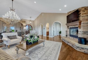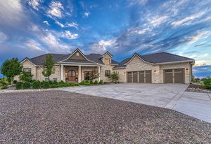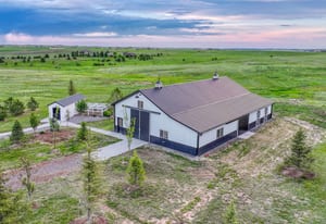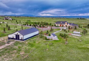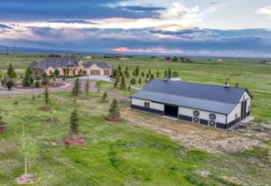 Inspirational architecture, meticulously curated and hand-selected high end finishes, park like setting, sweeping 200+ mile views of Pikes Peak and the mountain range merge to create one of the most stunning luxury equestrian friendly estates available. Privacy and tranquility on 35 acres of trees, lush green meadows and wildflowers perfectly suited to enjoy the best Colorado has to offer in close proximity to Denver and Colorado Springs. No expense was spared - built in 2020, over 6,000 square feet, 4 bedrooms, an office, 5 baths, 13 car garage, Restoration Hardware lighting, high end crystal door knobs, the highest grade of wide plank oak select hardwood floors, interior brick pillars, charming rounded doorways, 50 year tile roof, electric metal front gate and stone entry, completely fenced, an abundance of large Milgard architectural windows and doors for amazing natural light. Truly gourmet kitchen w/ top of the line Jenn Air appliances, Miele built-in espresso machine, 3 ovens, pot filler, 6 burner gas cook-top, granite counters, pantry, large island and luxury two-tone cabinetry. Main level primary suite w/ sitting room, hardwood floors, fireplace, expansive walk-in closet w/ closet system and a 5 piece bath w/ granite counters, double vanity, standalone tub and an over-sized shower w/ multiple heads. Open yet warm great room w/ fireplace, vaulted ceilings, stunning metal railings and a walk-out to outdoor entertaining areas, All bedrooms are ensuites. The grounds are absolutely stunning and well thought out w/ over 200 trees w/ varied mixture of trees, astroturf, gorgeous flowers and bushes. Massive steel barn/workshop/car barn/RV garage w/ electric, water, 2 stall doors, finished tack room area and concrete floors. Phenomenal outdoor entertaining spaces - front porch, covered back deck and lower level patio w/ hot tub and firepit. Finished walk-out lower level. Zoned for horses and other animals w/ community bridle trails. Stylish greenhouse and chicken coop