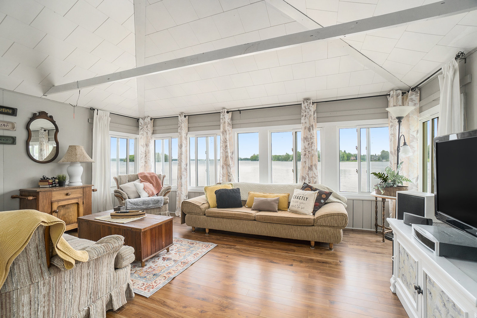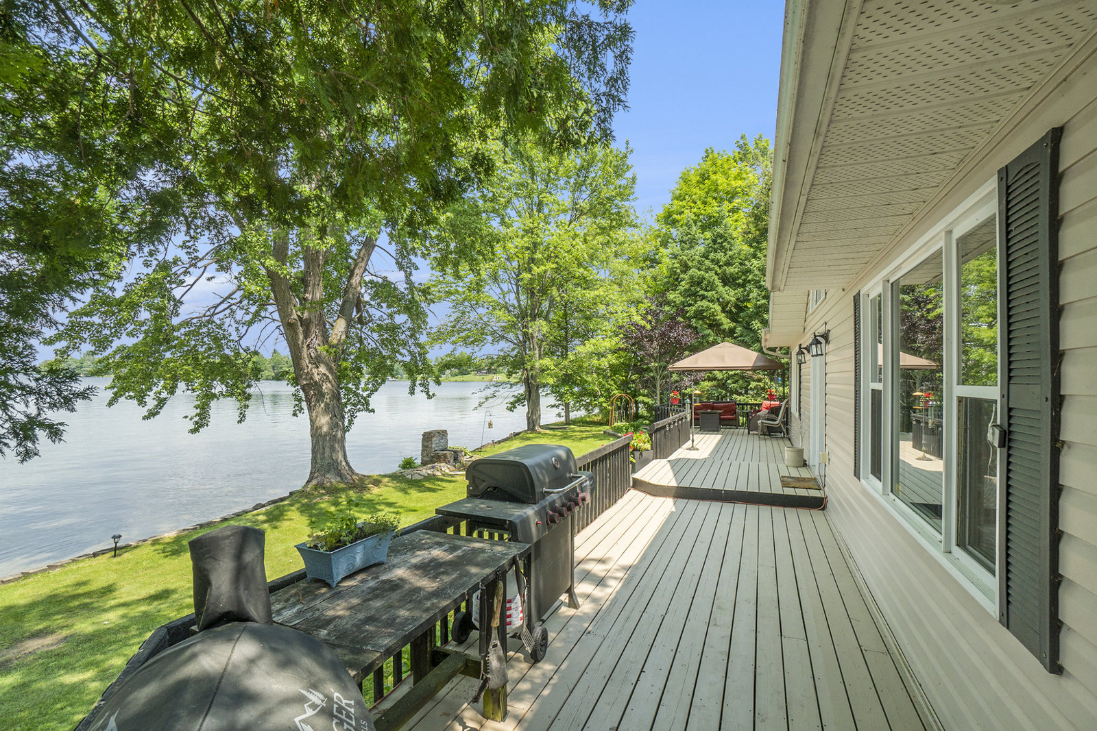 Five generations have enjoyed sunsets views from this spectacular Big Rideau Lake waterfront property since the early 1950s. Building on the footprint of the original cottage, allowed them to set the house this close to the waters edge. This sought after gorgeous 200 feet of level shoreline offers sandy beach entry at one end with good depth off the permanent concrete dock at the other. Big Rideau Lake provides excellent fishing, swimming & boating, is a UNESCO World Heritage Site and is part of the Rideau Canal system. Boat to either Ottawa or Kingston through the historic lock system. 15 minute drive to Perth or Smiths Falls with the hamlet of Rideau Ferry just down the road. Just over an hour to Ottawa or Kingston and 3.5 hours from Toronto. Let us tell you about the other features of this lakefront property. This year round waterfront home was built in 2000. It was designed so all the important components are found on the main level including the primary bedroom, second bedroom, full bath and laundry, while allowing room on the upper level for family or guests to spread out in the large open loft, which would be perfect for office or extra sleeping space, two good sized bedrooms & full bath. The open plan allows plenty of room to entertain. Vaulted ceilings & hardwood floors highlight the living/dining room with large windows and terrace door to access full length lakeside deck. An insulated, lake facing sunroom provides additional living ...