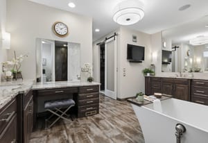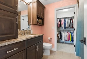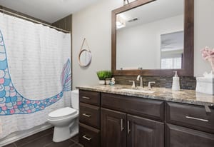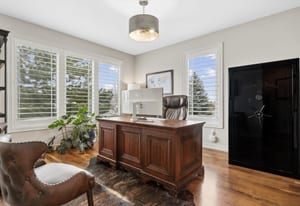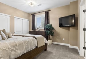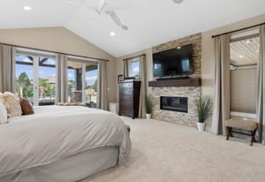 While the main floor master suite offers a private patio, gas fireplace, dual custom closets, and a luxurious bathroom complete with two vanity sink areas, a walk-in shower, standalone tub, and remote controlled custom blackout blinds, ascend to the upper level, where three additional bedrooms each boast their own en suite bathrooms. Relax and watch a movie, or grab a book in the cozy loft area, which also serves as a fantastic homework space.