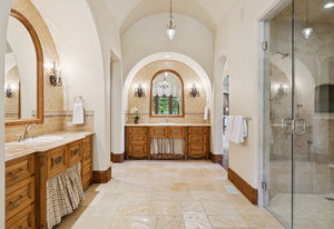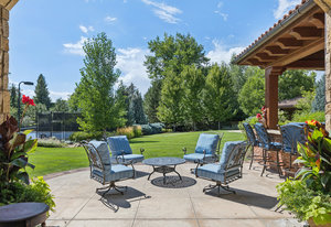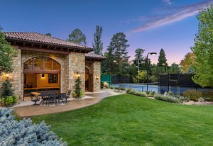 Perfectly nestled on 2.3+ acres of lush, resort-style grounds in the heart of Cherry Hills Village, is this European ranch villa, a masterpiece of exquisite design and unparalleled craftsmanship. Built in 2011 by renowned builder Lynn Harrison, the home reflects timeless sophistication with the highest degree of quality and finish. Step inside to discover soaring ceilings, wide plank hardwood floors, custom millwork and exquisite stone fireplaces with hand-carved details. The open-concept gourmet kitchen boasts dual islands, chef-grade appliances, a walk-in pantry, butler’s pantry, and seamless flow into the spacious family room, formal dining, wet bar and great room—ideal for effortless entertaining. French doors and oversized windows invite natural light and provide easy access to the multiple patios, manicured courtyards and treed grounds, and a rare lit tennis court. The main-level primary suite is a private retreat with wood-planked ceilings, serene garden views, a spa-like 6-piece bath, dual closets, and a cozy library with outdoor access to a private patio and fireplace. Three additional bedroom suites, each with their own stunning attributes, surround a dramatic two-story family room and stone fireplace. A charming office with custom carved entry doors, laundry room, mudroom, and an oversized heated 5-car garage complete the main level. The lower level was built for entertaining with a large recreational room, wet bar, a custom 2,200 bottle brick wine cellar, a lower-level office, 2 walk-out patios and a theater. A bright guest suite, a home fitness center, a magical bunk room, cedar closet and incredible storage complete this level. The natatorium features a hot tub, skylights, and walls of windows and sliding doors opening to the expansive outdoor pool patio—perfect for year-round enjoyment. Every detail of this estate has been thoughtfully curated to deliver an unparalleled lifestyle in one of Cherry Hills Village’s most coveted addresses, Village Road.