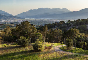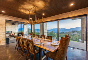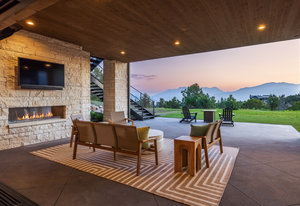 This carefully curated home in the Red Ledges golf community was designed to appreciate every angle of an outrageous view, including Mt Timpanogos, Deer Creek Reservoir and the Heber Valley, and even the Deer Valley East Village expansion, 10 minutes away. Six Covered Decks, 4 Patios, 1 Porch. 9 bedrooms total including two Bunk Rooms, each with en suite bathrooms and built-in closet systems. Six indoor and two outdoor fireplaces. Putting and chipping greens. Whole house radiant heat, three zone Air Conditioning, heated driveway, elevator. Montecello-inspired Wine Cave; Eagle’s Nest Bourbon Lounge; a Living Room with 20’ ceilings and a walkout Great Room, both with a wall of disappearing sliding glass door panels; one Kitchen with La Cornue induction range and Subzero fridge/freezer suite and Butler’s Pantry with smoke blue cabinetry and antique arch-top door and Wet Bar with integrated marble sink; the walkout Kitchen with Viking induction range and custom bell curve range hood; a 3- sided glass wall Dining Room; a main level Laundry and a walkout level Laundry and Craft Room. The Primary Bedroom with deck, indoor and outdoor fireplaces, bath suite with walk-in steam shower, walk-in closet with built-in system and handbag closet. Three-story floating staircase. Exquisite marble, limestone, oak, brass and glass accents throughout. This home was crafted with meticulous care and designed for a legacy.