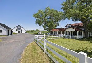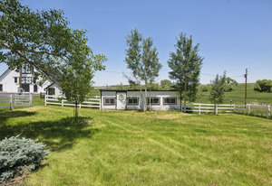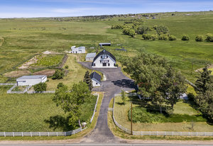 Outdoors, the property features multiple outbuildings, including a partially renovated original barn, a horse stable, a horse arena, and a drive-through equipment garage—ideal for both entertaining and working the land. A seasonal creek winds through the property, which also includes a scenic meadow, a working hay field, and well-maintained fencing and corrals—perfect for horses or livestock. Whether you're dreaming of a peaceful country retreat just 20 minutes from Castle Rock or looking to operate a true working ranch or ranchette, this property offers the flexibility and infrastructure to make it happen.