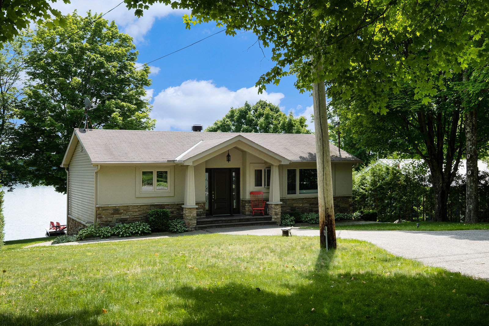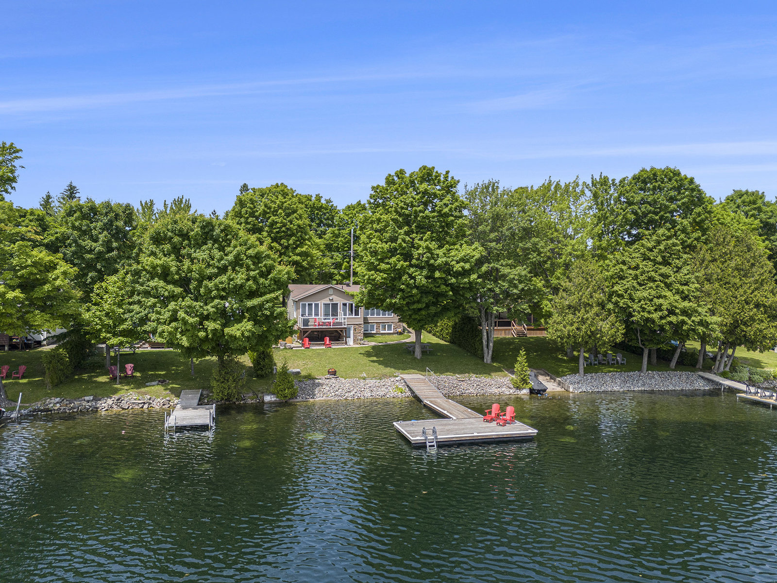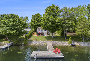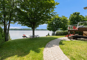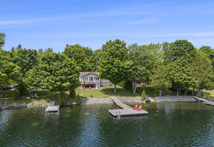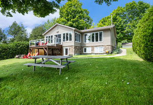 OPEN HOUSE SUNDAY, AUGUST 10TH 11 A.M. - 12:30 P.M. This might just be your dream waterfront home or getaway on beautiful Bass Lake! This meticulously maintained, fully furnished 4-season bungalow is truly turn-key offering the perfect blend of comfort, style & lakeside luxury while also offering main floor living. With sleeping space for the whole family, it's ideal for hosting large gatherings, entertaining friends or relaxing and living the lake life. The main living area is bright and open, with large windows showcasing stunning views of the lake. The open-concept kitchen, dining, and living space is designed for connection and relaxation, with modern finishes and a cozy, inviting space. The main floor primary bedroom has its own 3-piece bathroom and ample closet space with built-in organizers. Off the main foyer, you'll find a 2-piece bath & laundry room. Step outside to a perfect BBQ deck overlooking the water, complete with glass panelling to not obstruct the view. The walk-out lower level extends the living space with a cozy family room, full spa-like bath, second bedroom, den, and ample storage. Step out to the lakeside patio where a hot tub and sauna await—perfectly placed for soaking in the view. Enjoy a clean, swimmable shoreline and a top-tier docking system ready for boats, loungers, and lake toys. Whether you're enjoying morning coffee with sunrise views or winding down in the evening after a day on the lake,...