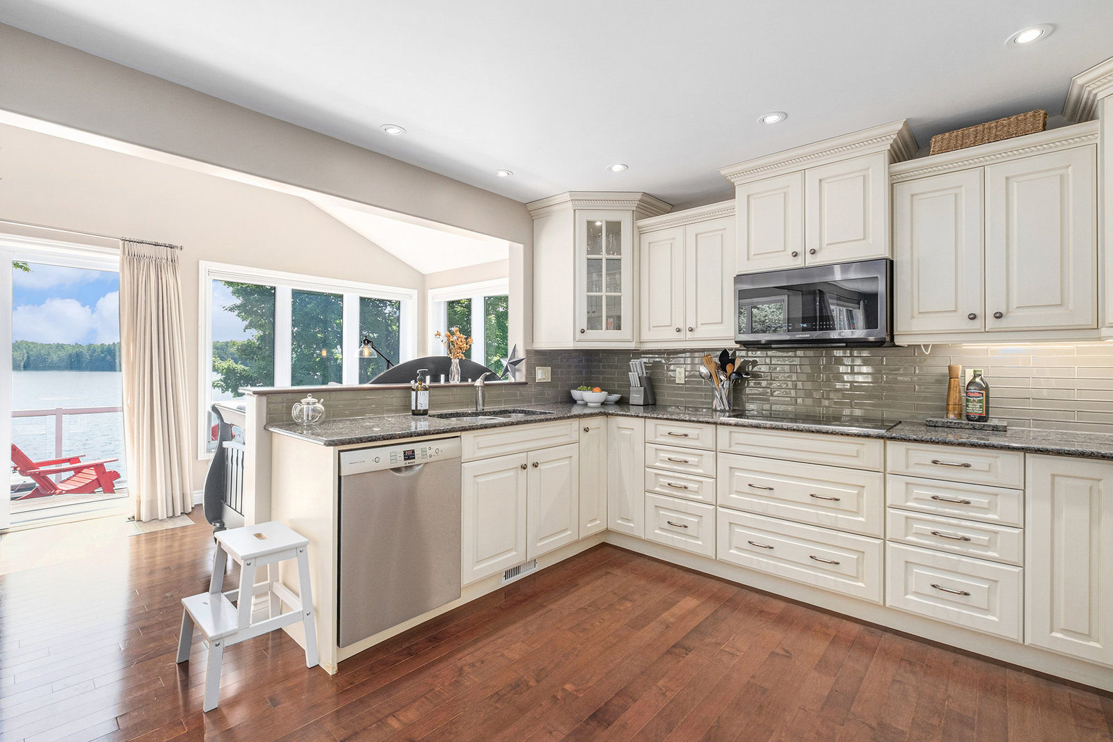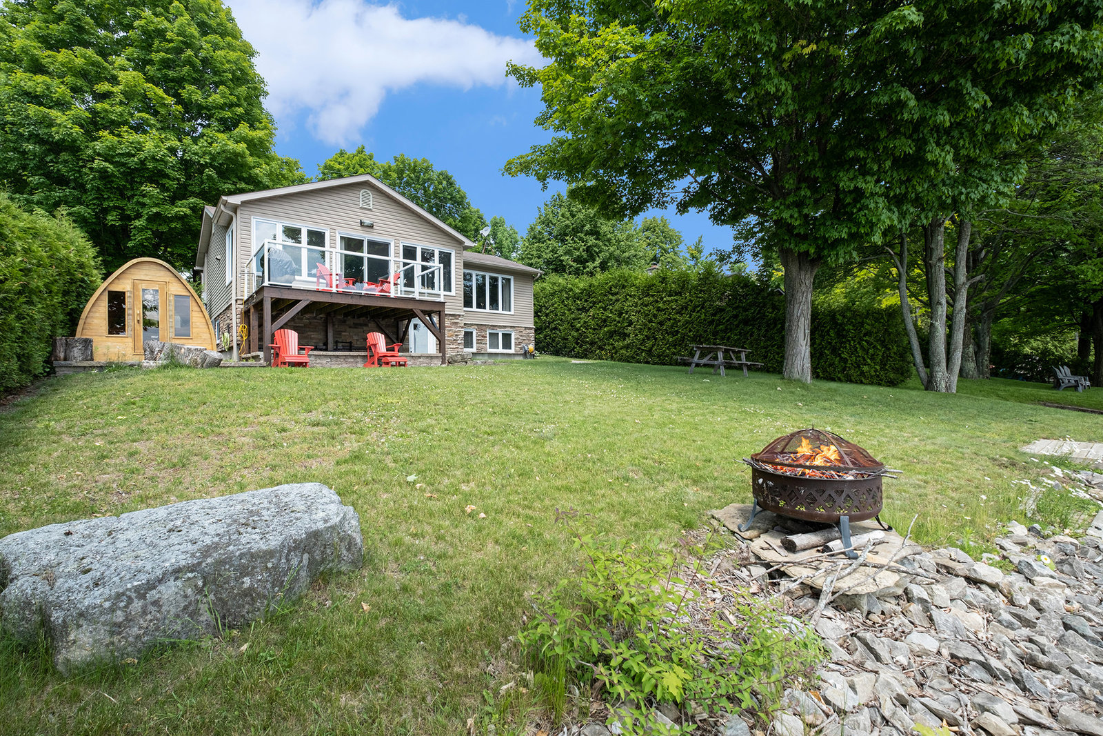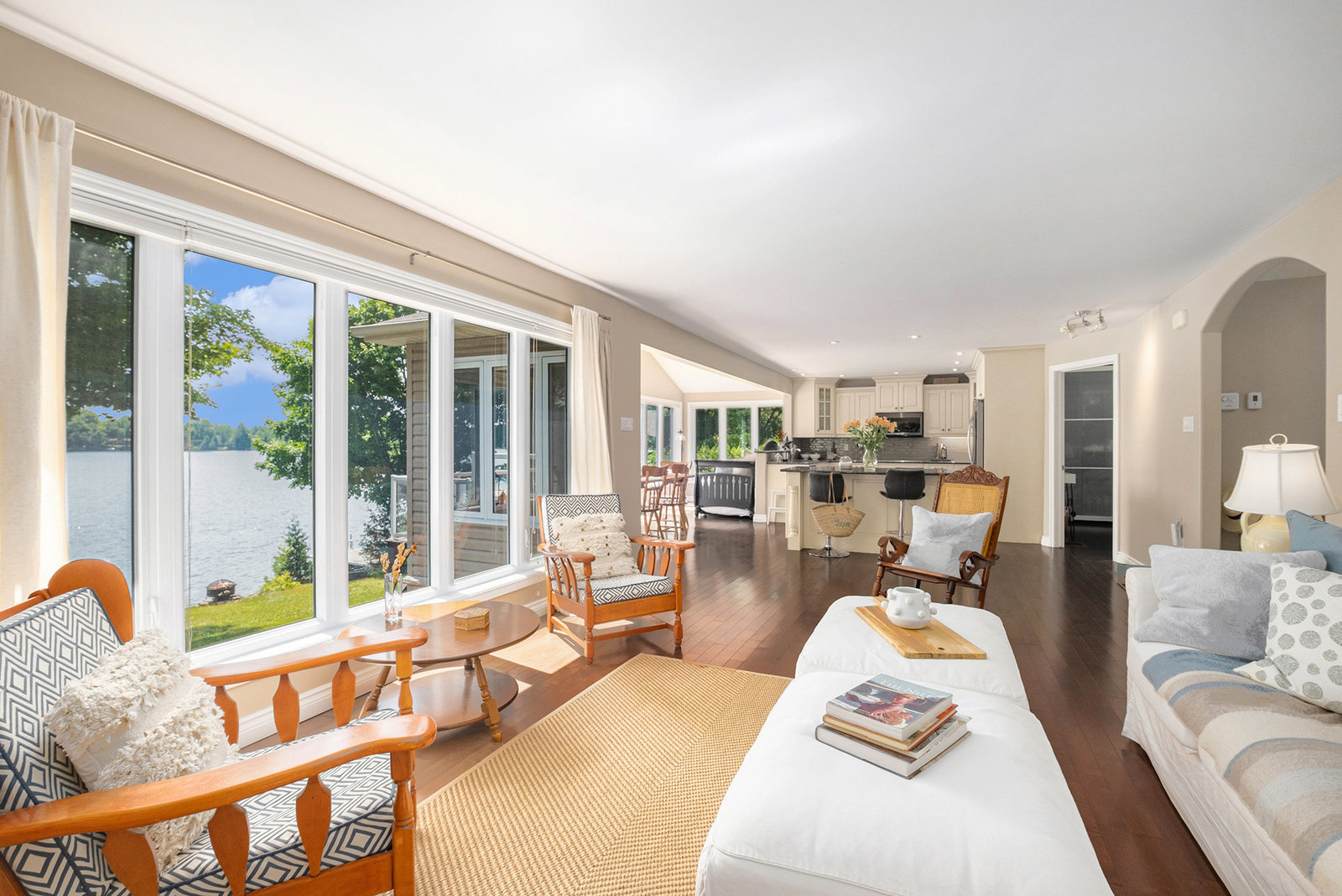 OPEN HOUSE SUNDAY, AUGUST 10TH 11 A.M. - 12:30 P.M. This might just be your dream waterfront home or getaway on beautiful Bass Lake! This meticulously maintained, fully furnished 4-season bungalow is truly turn-key offering the perfect blend of comfort, style & lakeside luxury while also offering main floor living. With sleeping space for the whole family, it's ideal for hosting large gatherings, entertaining friends or relaxing and living the lake life. The main living area is bright and open, with large windows showcasing stunning views of the lake. The open-concept kitchen, dining, and living space is designed for connection and relaxation, with modern finishes and a cozy, inviting space. The main floor primary bedroom has its own 3-piece bathroom and ample closet space with built-in organizers. Off the main foyer, you'll find a 2-piece bath & laundry room. Step outside to a perfect BBQ deck overlooking the water, complete with glass panelling to not obstruct the view. The walk-out lower level extends the living space with a cozy family room, full spa-like bath, second bedroom, den, and ample storage. Step out to the lakeside patio where a hot tub and sauna await—perfectly placed for soaking in the view. Enjoy a clean, swimmable shoreline and a top-tier docking system ready for boats, loungers, and lake toys. Whether you're enjoying morning coffee with sunrise views or winding down in the evening after a day on the lake,...