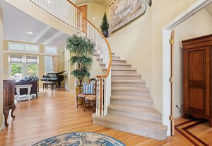 Step inside to be immediately greeted by the grand staircase and high ceilings. The home is thoughtfully designed for effortless main-level living. The spacious and inviting layout includes a generously sized primary suite, open-concept living and dining areas, and a beautifully updated kitchen that flows seamlessly to a newer, low-maintenance composite deck—ideal for entertaining or enjoying serene outdoor moments.