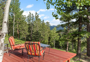 Discover the perfect blend of rustic charm and modern comfort in this enchanting cottage-style log home, nestled on 1.32 acres of peaceful land adjoining open space in Evergreen, Colorado. Surrounded by mature aspen and pine trees, this home offers privacy, serenity, and breathtaking mountain vista views in every direction.