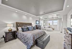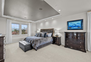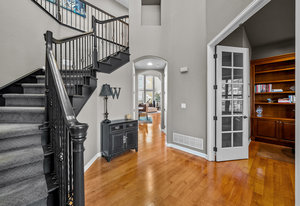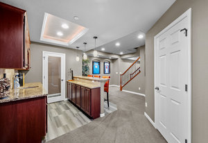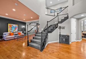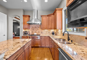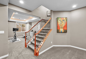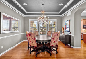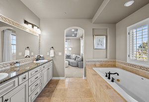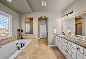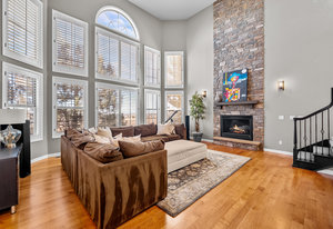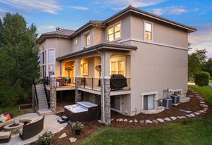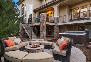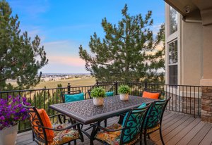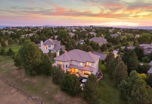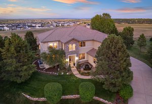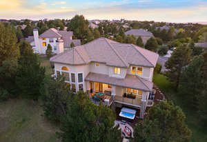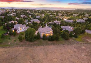 Located steps away from Gate 5 in the private, coveted Village at Castle Pines community, this well-appointed 5 bedroom | 5 bathroom residence offers stunning sunrise views, thoughtfully designed spaces, and immediate access to exceptional community amenities. The heart of the home, an open concept great room showcases soaring ceilings, double-height windows overlooking a large back yard, and a floor-to-ceiling stone fireplace. The adjacent kitchen features a Wolf six-burner gas range and hood, granite counters, stainless steel appliances, and outdoor access to a lovely deck - perfect for morning coffee under the color-strewn sky. Hardwood floors are found throughout the main level, and enhance the formal dining room and front living room. Further, an office with French doors and built-in cabinets offers a quiet, refined workspace. Additional rooms found on the spacious main level include a powder bathroom, convenient laundry | mud room, and 3-car garage with epoxy floor and built-in storage. Upstairs, the huge primary bedroom with sitting area is enhanced by a tray ceiling and coveted mountain views, and is paired with a sizable primary bathroom and closet. Three additional bedrooms with walk-in closets are complemented by two full bathrooms, one shared and one en suite. A loft-style workspace adds functionality and completes the upper level. Moving to the lower level, high ceilings give the finished basement an open feel, highlighted by a large game room with built-in cabinets, wet bar. Additional spaces include a wine closet, workout room, basement bedroom, and bathroom with a glass-enclosed shower and bench. With mature landscaping, sizable patio, fire pit, hot tub, a front water feature, and located a short 5-minute walk to The Summit Club pool | park complex and the Country Club at Castle Pines, this elegant home offers a perfect palette for your entry into the neighborhood and is surrounded by natural beauty at every turn.