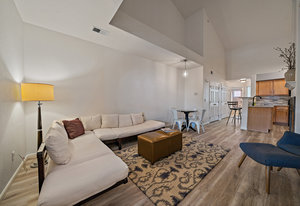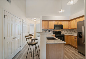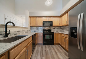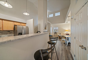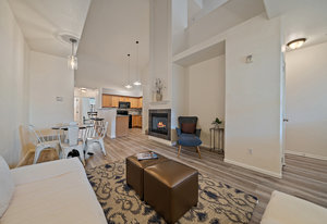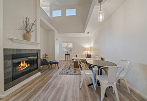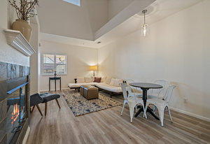 It's Easy To Get out and About In The Center of So Much in Olde Town Arvada! This Two Bedroom, One Bath Condo Conveniently Located Just Steps from Light Rail and So Many Eateries. The Open Floorplan with Vaulted Ceilings Allows for Ample Natural Light and is Ideal for Entertaining. With a Neutral Palette the Living Area is Spacious & has a Cozy Gas Fireplace. New Luxury Vinyl Plank Flooring Makes for a Clean Natural Flow thru the Living Spaces and Primary Bedroom. The Kitchen has Quartz Countertops and Tile Backsplash with Separate Entertaining Space. The Main Level Bedroom Boasts High Ceilings and Allows for Large Bedroom Sets. The Full Bath Includes Spacious Vanity Space and Tub to Soak and Relax. The Bedroom Upstairs has a Large Window, Walk-In Closet and Could be a Second Bedroom or Office. Oversized Garage with Included Cabinetry has Finished Walls, Bike Hooks, & Storage Closet as well as Interior Access to Unit. Washer & Dryer Included. HOA Includes Monthly Water Usage & Maintains All Exterior Maintenance Where you Can Lock and Leave All While Offering The Best Amenities with a Clubhouse, Fitness Center, Hot Tub and Swimming Pool. Prime Location Walking Distance to Olde Town, Breweries, Dining, Parks, & Light Rail Station. Easy Access to Denver & I-70 Corridor. Don't Miss Out on This One!