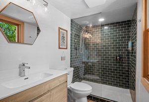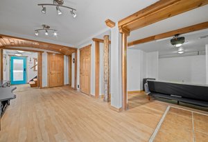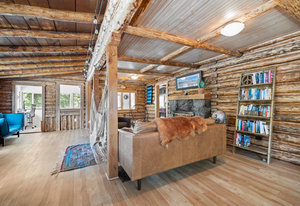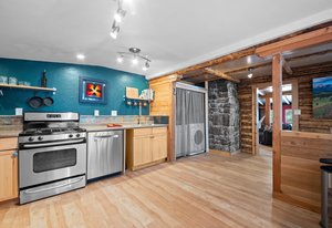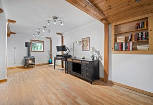 The open-concept family room, with a stone, wood-burning fireplace, creates a warm and inviting atmosphere for cozy evenings. A bright office nook with walls of windows allows natural light to flood the room, making it perfect for remote work or creative pursuits. The media alcove offers a peaceful retreat for movie nights or quiet reading. The eat-in kitchen features tasteful stainless steel appliances, while the convenient laundry niche ensures ease of everyday living. The bathroom is both functional and stylish, with a tiled walk-in shower for added comfort. More flex room throughout the home allows for customizing for your own needs.
