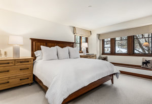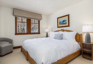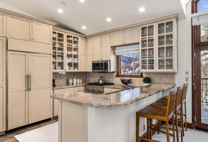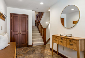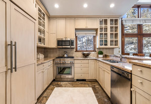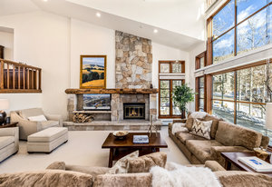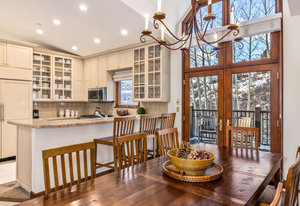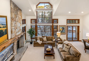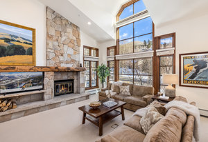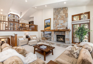 Spanning over 2,500 square feet of living space, this beautifully reimagined four-bedroom, five-bath end home is a true sanctuary and offers an elevated mountain lifestyle in every sense. Vaulted ceilings and expansive thermopane windows welcome you with warmth and incredible ambient light, framing serene mountain views from the spacious living room of the fronting ski slopes. Thoughtful upgrades throughout the home include two premium, high-quality Viessmann gas-fired boilers that provide luxurious in-floor radiant heat and endless hot water, Thermador gas range, Sub-Zero refrigerator, huge back deck with piped-in gas grill and an expanded front entry next to your private ski locker. The home has natural stone entryway and downstairs ski and boot room. The ambiance is further enhanced by a classic wood-burning fireplace—and natural log mantel perfect for winter evenings after a day on the slopes.