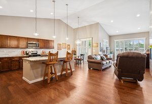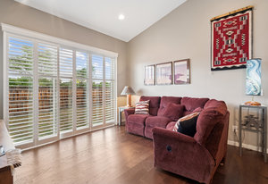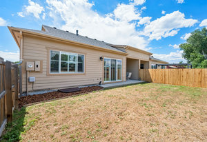 This spacious and stylish 3-bedroom, 3-bathroom duplex feels like new! Originally purchased from the builder in 2018, the property has been lightly lived in and meticulously cared for. A brand new central air system was installed in July 2025, providing comfort and efficiency for years to come. No HOA means no monthly dues—saving you thousands annually! Inside, you'll find an open-concept floor plan complemented by vaulted ceilings, creating a bright, spacious, and modern atmosphere—ideal for entertaining. The centerpiece of the living room is a floor-to-ceiling gas fireplace with stunning custom tilework, perfect for cozy nights at home. The windows throughout the home have all been fitted with plantation shutters and the main living space features beautiful hardwood floors with a durable engineered finish! The gourmet kitchen features custom maple cabinetry with dovetail construction for exceptional storage, slab granite countertops, and a large center island with an undermount sink, pendant lighting, and an extended countertop for barstool seating. Matching stainless steel appliances complete the space. A custom buffet with matching cabinetry and granite countertop adds style and functionality just off the kitchen. Adjacent to the kitchen, the open dining area includes a designer light fixture and a sliding glass door that opens to a covered patio and fully fenced private yard—perfect for outdoor living and entertaining. The main-floor primary suite offers comfort and style with plantation shutters, a tray ceiling, ceiling fan, and separate closets. The luxurious 5-piece en-suite bathroom features dual undermount sinks, slab granite countertops, and custom tile throughout. Two additional bedrooms share a well-appointed full bath, completing this thoughtfully designed home. The full, unfinished basement with 10-foot ceilings and rough-in plumbing offers endless potential—ready for your personal touch. Great location, less than 10 minutes from Olde Town Arvada!