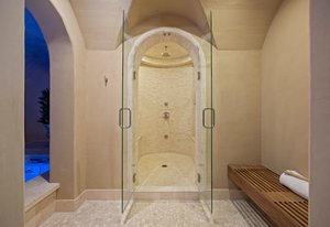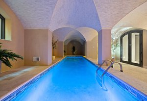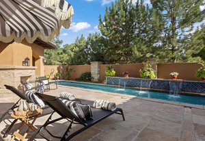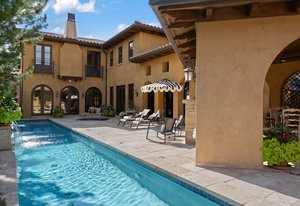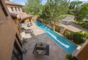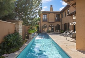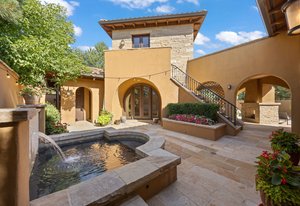 Discover this architectural gem nestled in the exclusive, gated community of Belcara. This luxurious Tuscan-style estate offers approximately 9,584 square feet of unparalleled amenities and elegant living spaces. Features include a stunning barrel ceiling grotto with an indoor pool and steam shower, a resort-inspired 57-foot outdoor lap pool with waterfall, hot tub/spa, and a 300-bottle temperature-controlled wine cellar. The property boasts a full gym and a spacious home theater perfect for relaxation and entertainment. The enormous vaulted and beamed family room showcases a see-through fireplace opening to a large gourmet kitchen, while the 21-foot-long dining room is surrounded by arched windows, creating a perfect setting for gatherings. The luxurious primary suite offers quaint Juliet windows overlooking the magnificent pool, a spa-like 5-piece bath, and two expansive closets. Additional highlights include multiple dens and reading spaces, three large bedrooms with the potential to expand to five, and a separate casita with a bedroom, bathroom, and den—ideal for guests or staff. Located at 401 Garfield Street #1, this exceptional compound combines privacy with proximity to Cherry Creek, making it a highly sought-after sanctuary for sophisticated living.
