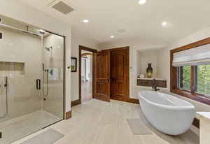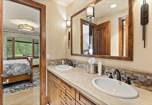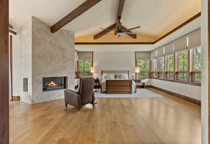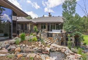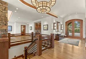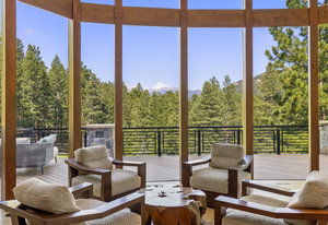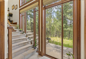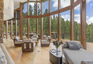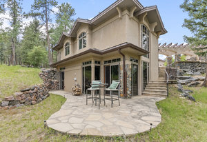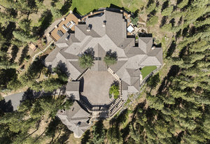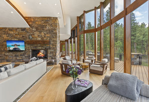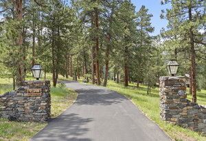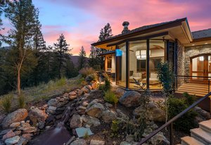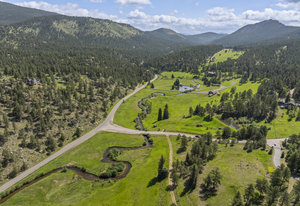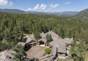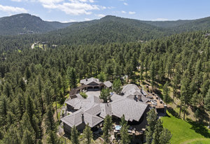 Unparalleled Luxury Estate in Evergreen’s Legacy Upper Bear Creek Enclave. Set on 8.7 gated acres with panoramic views of Mt. Blue Sky, this one-of-a-kind Evergreen estate offers the ultimate in luxury, privacy, and design. Completely remodeled in 2022 with no expense spared, the home features exquisite finishes including Venetian plaster, curved ceilings, wood beams, and wide-plank white oak floors. Floor-to-ceiling windows flood the home with natural light and showcase breathtaking mountain views. The sleek chef’s kitchen boasts walnut cabinetry, Taj Mahal Quartzite counters, Viking double ovens, and direct access to expansive decks ideal for outdoor entertaining. The show-stopping primary suite includes a modern fireplace, coffee bar, private deck with hot tub and water feature, and a spa-quality bath with heated floors, freestanding tub, towel-warming drawer, and steam shower with built-in audio. With 6 bedrooms, 9 bathrooms, and incredible amenities including an impressive multi-use room currently being used as a recording studio, 4,100-bottle climate-controlled wine cellar, and multiple living spaces, this home is a true retreat. Additional features include a separate 1-bed, 1-bath guest house with a woodworking shop, large outbuilding, and shared access to Upper Bear Creek & Meadow. A rare offering in one of Evergreen’s most prestigious locations—this is mountain living redefined. NOTABLE FEATURES – HOME SPECS 50-year DaVinci Roof Stone and stucco exterior Venetian plaster Brilliant and expansive remodel Radiant and forced air heating 5 fireplaces Whole house sound and security Natural Gas High Speed internet Full house backup generator 8-person hot tub Luxurious primary suite Chef grade Wolfe appliances Large shed for storage, etc.
