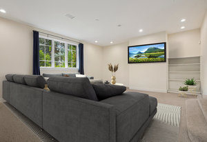 The interior offers an exceptional floor plan with generously scaled rooms throughout. A vaulted study/library provides a refined workspace, while the main-floor guest suite ensures comfort for visitors. The spacious kitchen, dining, and living areas open to both intimate and large-scale entertaining. A garden-level bonus room provides flexibility for recreation, fitness, or creative pursuits.