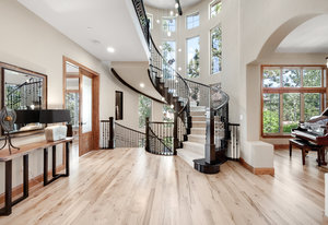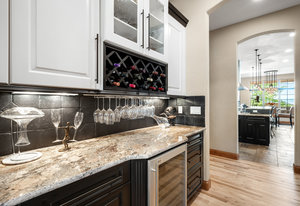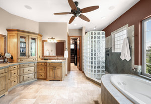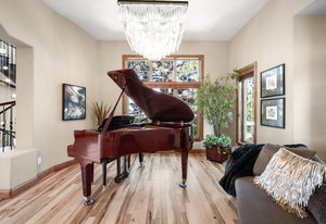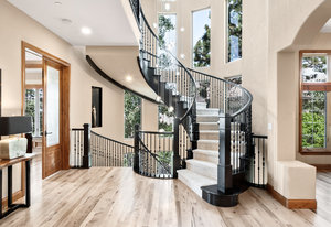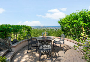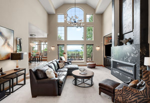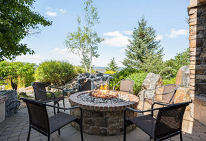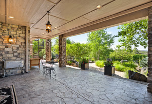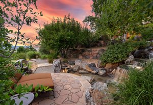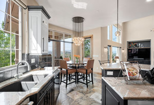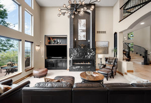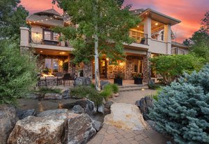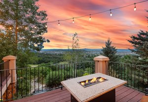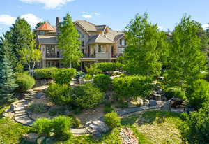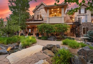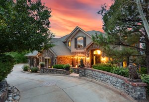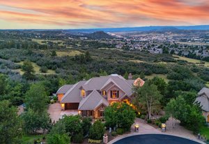 The one with views worth framing. From the moment you arrive, the home’s grandeur is unmistakable. Nestled in the trees on a quiet cul-de-sac in Castle Rock’s prestigious Pinon Soleil, it beautifully blends indoor and outdoor living. Extended gardens carry its elegance beyond the walls—charming patios, covered alfresco spaces, a meandering water feature, and pathways invite exploration. And the scenery? Iconic Castle Rock in the foreground, w/ Pikes Peak and sweeping mountain vistas beyond. The main level, infused w/ timeless style, is where you begin to take it all in. From the welcoming entry to the sun-filled living room, light shifts beautifully throughout the day. Bold design details elevate the space: a granite-flanked fireplace, art niches, artisan lighting, and plush sculpted carpet. The reimagined kitchen features stainless GE Monogram appliances, hidden pantry, a large island with prep sink, and extended counters—ideal for the home chef. Display cabinets and abundant storage are smartly placed. A formal dining room and butler’s pantry add ease for entertaining. In the primary suite, a 2-sided fireplace with granite surround sets the tone for cozy nights. A secluded terrace captures morning light and mountain views—or descend the spiral stairs from the bath to your private gym. Also on the main level: an executive office with fireplace, deck access, and built-ins; a music room, powder room, laundry, and 4-car garage with epoxy-coated floor and shelving. Up the sleek, sculptural staircase: a versatile loft and 3 bedrooms, each with ensuite and walk-in closet. Downstairs: an open rec room with game nook, rustic stone wall and fireplace, a wine cellar for storing your favorite vintages, wet bar, screening room, and private guest suite. Outside, follow the path to a meditation garden w/soothing waterfall. The neighborhood offers convenient proximity to downtown Castle Rock & all the area offers yet sits perched above the city so you feel like it’s a world away.