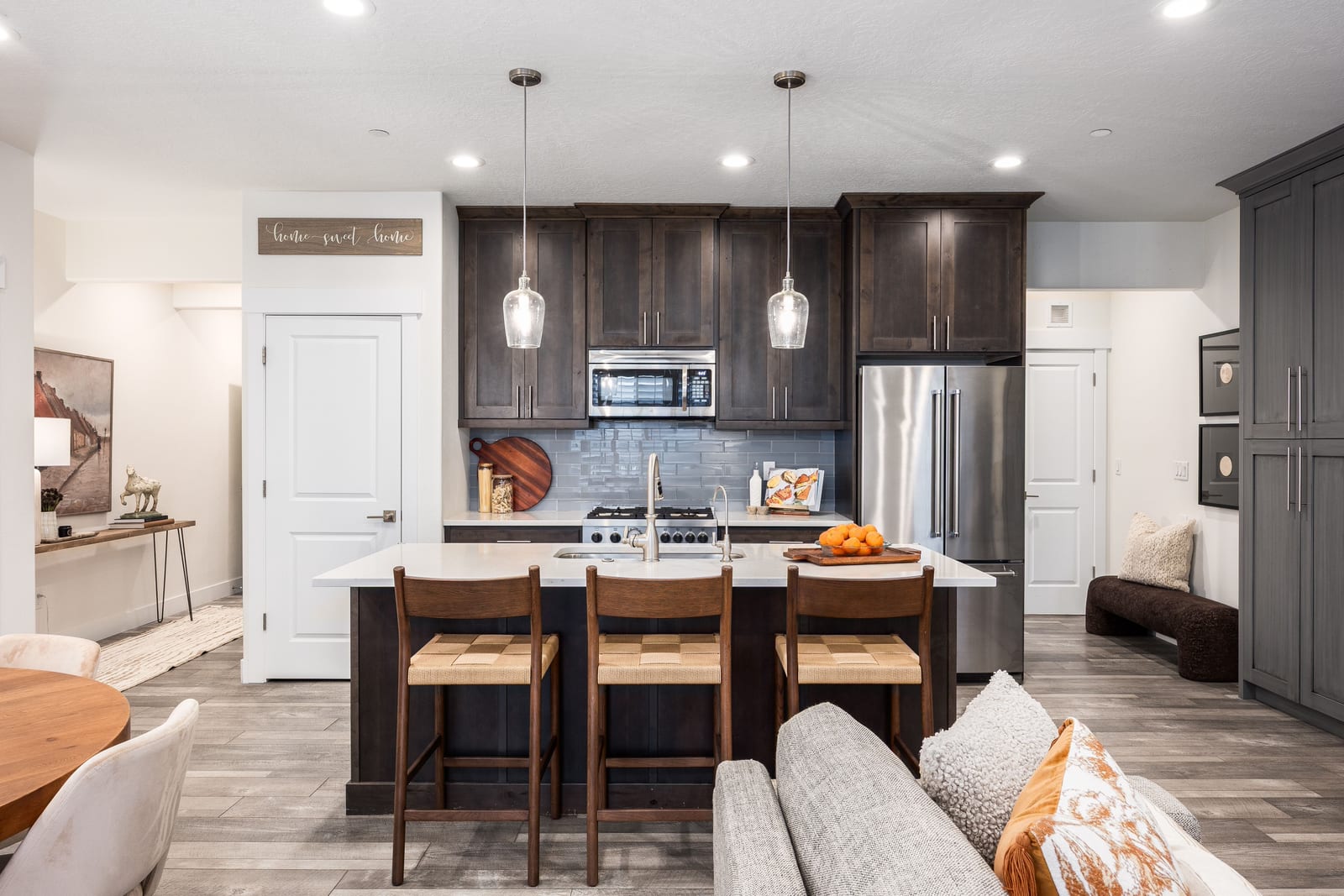 Refreshed interiors with a brand new price, enjoy the ease of mountain living in this beautifully maintained Pinebrook Quarry Springs townhome, ideally tucked on a quiet cul-de-sac and backing up to complete open space, ready for the Park City adventurer! Bright, open living with a well-appointed kitchen featuring a Bertazzoni oven, dining area, and Juliet balcony with views of the Eastern Mountain Range. The main-level primary suite includes a spacious ensuite bath, walk-in closet, and access to a peaceful covered deck overlooking a natural red rock yard, perfect for morning coffee, afternoon reading, and quiet, private moments in nature. The top level features two generously sized ensuite bedrooms ideal for hosting family or guests. Dual thermostat controls for the upper and main living areas allowing you to independently tailor temperatures on both the main and upper living areas. The lower level offers an attached 2-car garage plus 361 square feet of versatile storage—perfect for a gym, office, gear room, future theater room, the potential is abundant. The convenient, walkable Quarry Club House includes a large outdoor pool and spa, with easy walk/bike access to Quarry Village, Whole Foods, and nearby trails. Just minutes to Woodward Park City, world-class skiing, and convenient I-80 access for commuting, this location makes it easy to live, play, and connect year-round.