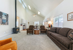 The perfect place for those looking for a simple little cabin at the Lake. Situated on the equivalent of two lots in Tahoma, adjacent to larger parcels, this house offers a nice sense of space and privacy in Tahoe Cedars. Built in 1995, this house features a great room floor plan with vaulted ceilings, a cozy gas fireplace, and an open kitchen. Two guest rooms with a bathroom in between offer comfortable accommodations. A hall laundry area allows for quick cleaning and drying of beach towels and snow clothes. Are you a hobbyist, tool guy, or looking for a separate space for a home office or yoga space? There is a garage-sized storage shed to reimagine for your needs, or to secure off-season gear ...