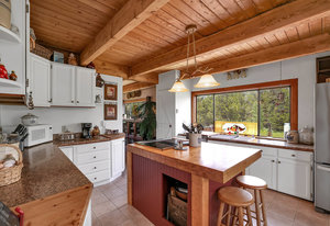 Tucked away on 1.71 acres just minutes from downtown McCall, this inviting mountain retreat blends rustic charm with modern comfort. Step inside and be greeted by natural light, highlighting hardwood floors, tongue-and-groove ceilings, and a striking log staircase at the heart of the home. The spacious living area, with a new pellet stove, flows into the dining space and open kitchen—ideal for entertaining. The vaulted primary suite offers a peaceful escape with a private bath and abundant natural light, while three additional rooms upstairs provide flexibility for guests or a home office. The walk-out basement adds a comfortable family room perfect for movie nights or game time. Step outside...