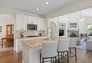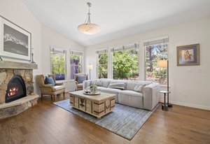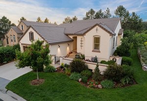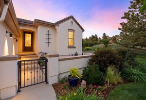 Tucked within a serene enclave of the prestigious and gated Village at Castle Pines community, this beautifully appointed 4 bedroom | 3 bathroom residence offers extensive updates, modern design, and an indoor-outdoor lifestyle tailored to Colorado living. Poised on a private, lushly landscaped lot, this refined home offers a true lock and leave lifestyle. The light-filled great room showcases a stone fireplace and window wall framing the serene, private backyard. The newly renovated kitchen features crisp white cabinetry, quartz counters, stainless appliances, and a cozy breakfast nook. A formal dining room sets the stage for entertaining year-round, while the owner's retreat offers a quiet escape with private patio access and a thoughtfully redesigned primary bath with heated floor, dual vanities, soaking tub, oversized shower, and a generous walk-in closet. A rare main level secondary bedroom sits adjacent to a full bath, ideal for guests or multi-generational living. A dedicated office, laundry room, and attached garage round out the main floor. Downstairs, the expansive lower level offers a versatile recreation room with ample space for entertaining, gaming, or relaxing, along with two spacious bedrooms, a full bath, and a wide hallway with built-in storage. Outside, the property shines as brightly as it does inside. A spacious southeast-facing patio is ideal for al fresco dining and entertaining, framed by mature trees, lush perennials, natural Colorado stone retaining walls, and a substantial privacy berm for tranquil seclusion. The front courtyard adds charm, while the surrounding front, back, and side yards evoke the feeling of a private mountain retreat. Walkable to dining, shops, tennis and pickleball courts, pools, and the community fitness center, this impeccably maintained home offers an immediate opportunity to enjoy the best of luxury living in one of Colorado’s most exclusive communities.