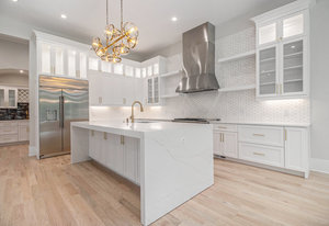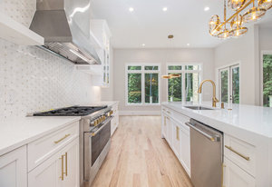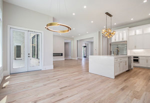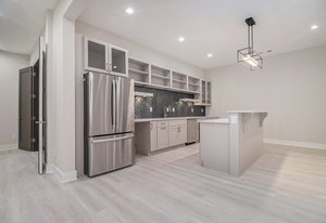 Step inside to discover three impeccably finished levels where form meets function. The main level impresses with soaring 12-foot ceilings, abundant natural light, and seamless indoor-outdoor flow. Anchoring the space is a chef’s kitchen outfitted with quartz countertops, a grand center island, top-tier stainless appliances, and custom solid maple cabinetry. A hidden scullery and Butler’s pantry with wine storage and beverage fridge elevate entertaining to an art form.
