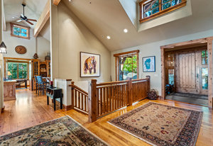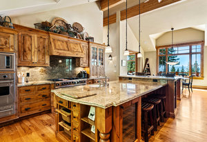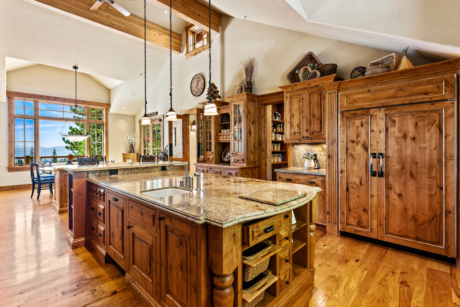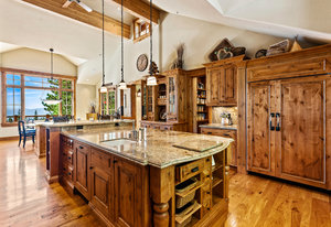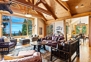 Stunning mountain-style estate with breathtaking lake views, situated on 1.33 acres. Ira Rodman Construction featuring knotty alder cabinetry, hickory flooring, granite, quartzite & limestone throughout, Lutron graphic eyes, ipe decking, remote control shades & elevator to all floors. Great room concept w/ vaulted beamed ceiling, picture windows to take in the lake views & picturesque setting. Gourmet kitchen features Viking, Sub Zero & Bosch appliances, center island & walk-in pantry. Expansive south-facing deck w/gas fire pit and second kitchen w/ separate driveway access is ideal for catered social gatherings. 7 bedroom suites w/ separate family room and rec room, 7 ...