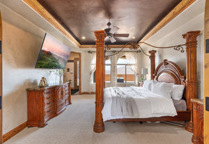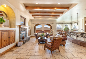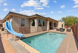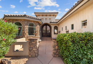 Incredible opportunity to own a home that the bank has appraised for almost $2m in beautiful Ivins. Your perfect Tuscany retreat in the heart of Ivins awaits! This home truly has it all — from the sparkling pool and private courtyard with gorgeous views, to the oversized 4-car garage that fits all your gear. The home features a remarkable multi-level layout perfect for entertaining and creating memories with family and friends. At the entrance, you are welcome by the serene sounds of the water feature in the large courtyard. Once you walk through the large arch glass wooden doors, you will experience a large open floor concept that includes the large upstairs living room, kitchen, and dining area with large mountain view windows. The home features 5,544 SqFt (2,772 in each floor), 6 bedrooms, 6 bathrooms, theater room, 2x flex rooms, Office/Den, large storage room, granite honed edge countertops throughout, and wood beam living room ceilings. Inside, the kitchen is a chef’s delight with large multi-tier island, a built-in fridge, and a hidden pantry big enough for all your needs, knotty alder cabinets, 6 burner chef freestanding stove, and built-in swivel island chairs. The spacious primary bedroom is a relaxing escape, complete with its own secluded flex room, a custom built-in closet, a spa-like bath with a triple-head shower, separate soaking tub, and large sauna room. The finished basement has a large 2nd living room that is perfect for a game room. Movie nights? This home has you covered, thanks to your very own theater room. You’ll also love the large mudroom, laundry space, kitchenette, and a den perfect for work or hobbies. The outdoor space is a wonderful entertainment space with Outside, fire up the built-in barbecue and fridge under the covered patio, and enjoy effortless entertaining.