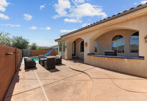 The home is near the Greater Saint George paved bike/walking trail system with over 50 miles that connects you across the city, including the iconic Snow Canyon State Park, Sullivan Soccer Park, and miles of beautiful Red Rock terrain. Minutes from amenities in downtown Saint George, such as over 16 golf courses including Black Desert Golf Course home to the Fall 2024 PGA TOUR's FedEx Cup, hiking and cycling trails, and a short drive to some of America's most awe-inspiring places; National parks Zion, Bryce and the north rim of the Grand Canyon, and state parks like Sand Hollow Reservoir, Gunlock Reservoir, Quail Creek Reservoir, and nearby Dixie National Forest. The City of Ivins is known for its low light pollution initiative to protect its night sky and for its breathtaking views of Red Mountain. There is no doubt that the word is out that at 2,700 feet above sea level, on the edge of the Mojave desert, Colorado Plateau, and the Great Basin, lies one of America's most beautiful and distinctively geological places, Saint George! No other place says that you have arrived than this beautiful home.