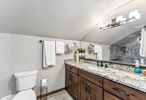 Every inch of the home has been created to serve both function and feeling—from the entryway that anticipates a ski day’s return to the kitchen that encourages slow coffee and shared meals. Bathrooms are polished but unfussy, allowing nature and design to speak in balance.