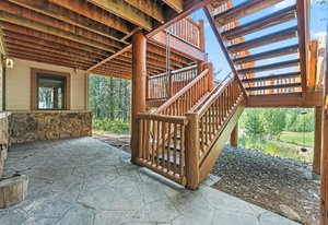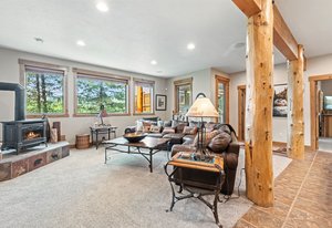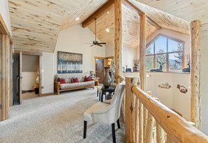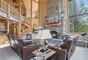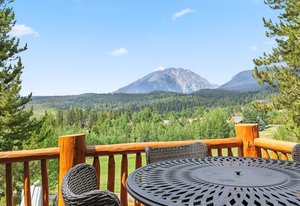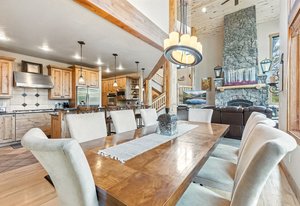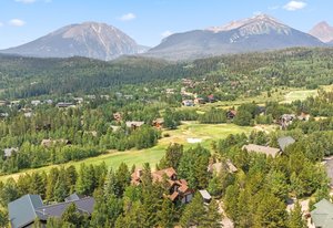 Experience the best of mountain living with this 1/4 share of a stunning 5-bedroom, 6-bath custom home located on the prestigious Raven Golf Course in Silverthorne, Colorado. This luxury retreat blends rustic elegance with modern comfort—featuring a grand log staircase, massive stone fireplace, aspen wood ceilings, and enormous windows that bring in abundant natural light and breathtaking views of Buffalo Mountain and the Gore Range.