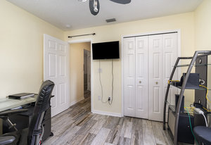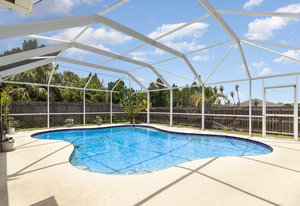 How does $50 to $60 dollar electric bills sound? The seller had solar installed and will pay off the contract at closing saving potential buyers thousands of dollars over the years!This beautiful pool home sits on almost a 1/2 acre and is located just outside Bayside Lakes. The current owner has put over $80k into this home in the last couple years! Updates include Kitchen appliances and countertops, whole house plank tile, Hurricane impact windows, Water filtration system (owned), Resurfaced pool, Salt water pool chlorinator, and HVAC system. See attachment for more updates. Come check out this gorgeous home that will provide you years of carefree enjoyment!