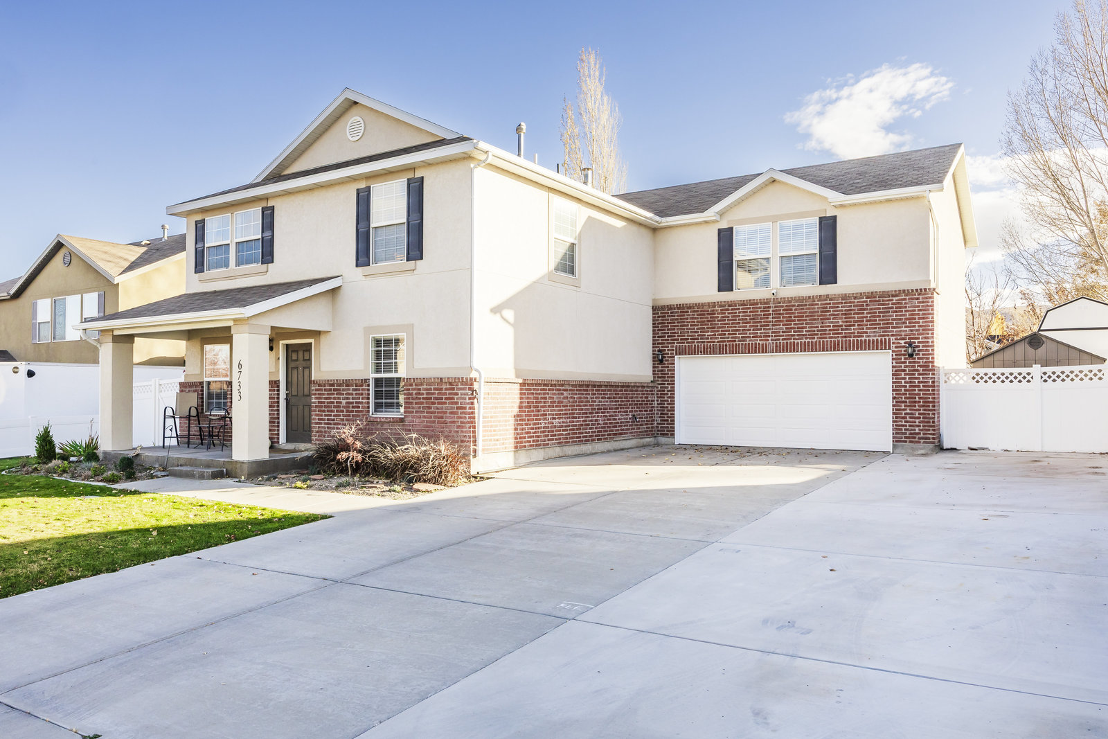 Back on the market after some recent updates. Situated in one of Herriman’s most desirable neighborhoods, this beautifully refreshed home is available due to a job relocation. Updates include new interior paint, brand-new light fixtures, updated upstairs flooring, a tankless water heater, a new garage door and a generous covered patio ideal for both everyday living and entertaining.Inside, the open-concept kitchen features a spacious walk-in pantry and flows seamlessly into the family room, which opens directly onto the covered patio for effortless indoor-outdoor living. The oversized primary suite offers an expansive walk-in closet and plenty of space to unwind.A versatile upstairs flex room...