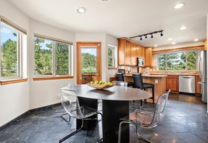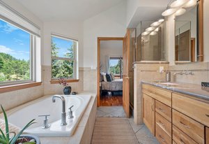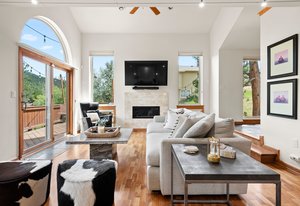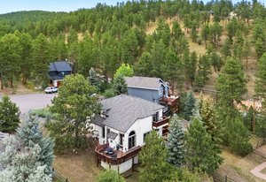 Tucked quietly at the end of a cul-de-sac in Evergreen’s Sunridge neighborhood sits a well-kept secret waiting to be lived in - charming and comfortable in its setting, unbothered and welcoming upon visiting. A unique blend of mountain charm and modern touches adorns the 3-bed/4-bath home with natural textures, wood, stone, warm finishes, clean lines, and timeless updates. The main living space is airy and full of natural light that shifts with the day from windows framing mountain and terrain views. The layout flows with purpose-open but cozy, polished yet unpretentious. From the kitchen’s quiet confidence to the openness of the living room, everything here feels curated for comfort and connection. Whether you're curled up by the fireplace or throwing open the doors to multiple decks for fresh air and dinner outdoors, the home always feels in rhythm with its surroundings. Upstairs, the primary suite offers quiet separation with its own private deck, walk-in closet, and spa-like bath. Two additional bedrooms are ideal for guests or family, plus a landing large enough for a remote office. Downstairs, a fully finished walk-out level opens up more possibilities. Use it as a second living area, guest retreat, creative space, or that elusive “bonus room”. It adapts without fuss. Outside, multiple decks offer front-row seats to changing skies and whispering pines. The backyard is ready for dogs, kids, gardens, or a hammock strung between trees for afternoon escapes. Located a short stroll from Kittredge’s heart, you’re near boutique shops, local restaurants, and a park. A few miles further is historic downtown Evergreen with additional conveniences, art, music, and lakeside charm. For outdoor lovers, Lair o’ the Bear Park is super close by, offering endless trails, fly fishing, and more. This isn’t just a home-it’s a launchpad for a lifestyle blending comfort, character, and connection with Colorado’s wonderful landscape, and easy commute to metropolitan Denver. Welcome!