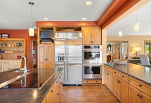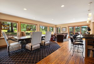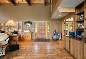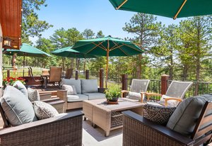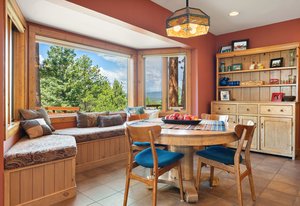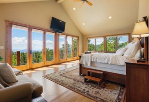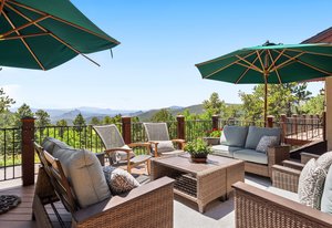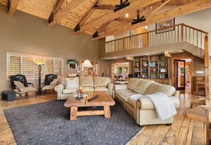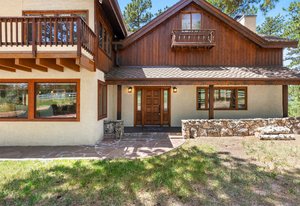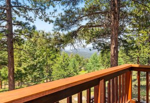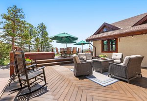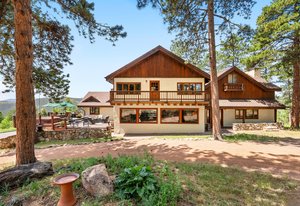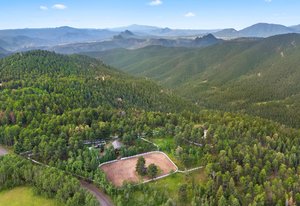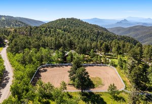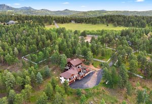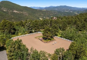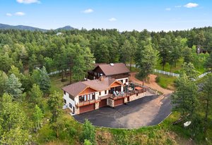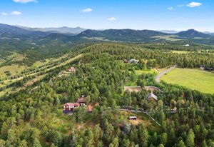 For those longing for a life where the mountains meet the sky and the trails stretch for miles, this is your ‘Cowboy Take Me Away’ moment. Where wide-open pastures and rugged beauty define the lifestyle, this property offers a legacy ranch experience just 45 minutes from Denver. The extraordinary private ranch home in Conifer is a chalet-style residence of stucco, cedar & stone that spans 5779 sf. You'll experience a seamless blend of rustic elegance & sophisticated craftsmanship throughout the thoughtfully designed living space on this secluded 36-acre retreat. Agricultural zoning enhances the appeal, with a 6-stall barn, paddocks & riding arena, perfect for equestrians. The meticulously maintained grounds showcase Colorado's natural beauty with vibrant wildflowers, graceful aspen trees, and towering pines. The home itself was completely renovated including a 2000+ sf expansion in 2010. The main level, pegged oak floors, and beams were originally finished in rich ebony stain & expertly sanded to reveal their gorgeous, rugged, natural character. The gourmet kitchen features high-end appliances & black honed granite countertops – in an open-concept style it offers easy access to a built-in breakfast nook and formal dining room. The great room offers soaring ceilings, a massive wood-burning fireplace, rustic exposed beams, and an impressive wall of windows that frame breathtaking panoramic views stretching from Pike's Peak to the south across to the Continental Divide to the west. The layout includes 3 bedrooms on the upper level, while the main floor houses the primary suite complete with enormous walk-in closet, laundry room, office and en suite bathroom - the soaking tub capturing the magnificent mountain vistas. Add'l entertainment spaces include a charming family room with wood-burning stove and wet bar. This property offers unparalleled tranquility while maintaining convenient access to Conifer's amenities, world class skiing and Denver International Airport.
