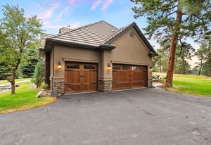 Completely renovated since 2022, this exceptional 5 bed, 6 bath mountain retreat spans 5,381 square feet of pure luxury within the gated Golf Club Point enclave—an exclusive neighborhood of only eleven custom homes on a private road. Every detail has been meticulously reimagined, nothing has been overlooked—this is essentially a brand-new home. This home by award-winning architect Andy Ades, oozes mountain luxe. The entirely transformed interior showcases an entirely new kitchen: cabinetry, island, quartz countertops, Wolf & SubZero appliances - all brand new in 2022. White oak hardwood floors create warmth, while floor-to-ceiling windows in the great room flood spaces with natural light across 2 dramatic stories. Superior craftsmanship defines every detail: dual new furnaces, central air conditioning, LED lighting, custom window treatments & a stunning hand-hewn walnut mantle crowning a quartz hearth. The primary bedroom retreat boasts a freshly renovated en-suite with quartz counters, glass-enclosed steam shower, free-standing tub, gorgeous cream and wood finishes with gold accents and a custom walk-in closet system and sitting area. The upper level has new wood flooring, iron bannisters and renovated baths each with a designer flair, while the expansive lower level offers recreational amenities including bedroom suite, game room with wet bar & entertainment spaces. French doors open to stained concrete patios with gas firepit overlooking manicured fairways, creating seamless indoor-outdoor living. Professional landscaping with new strategically placed privacy trees enhances the serene setting. Steps away, the acclaimed Hiwan Golf Club offers a vibrant social calendar, championship golf, tennis, pickleball, swimming and fitness classes. This exceptional property offers resort-style living with convenient access to world-class skiing, downtown Denver, and recreational opportunities including cross-country skiing from your backyard!