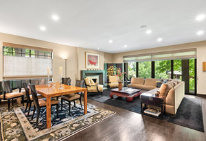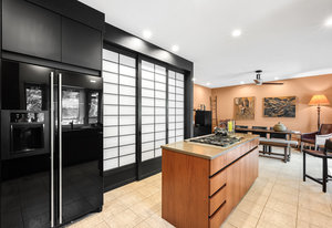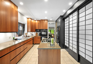 This home has been lovingly cared for and thoughtfully remodeled with numerous custom upgrades throughout. Highlights include rich hardwood floors, Pella windows and sliding doors, a built-in sound system in the living room, and a custom-designed fireplace. The gourmet kitchen features sustainable mahogany cabinetry by Crystal of Canada, blending elegance with eco-conscious design. The primary suite was also designed with accessibility in mind, offering a layout that can easily accommodate wheelchair access if ever needed.