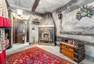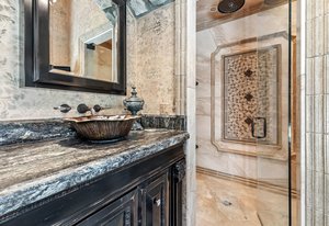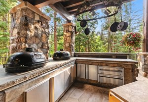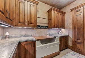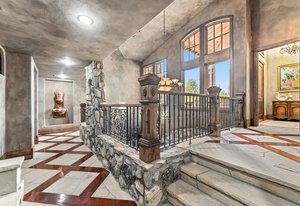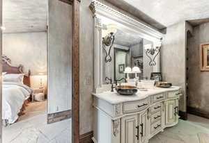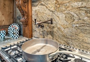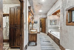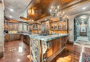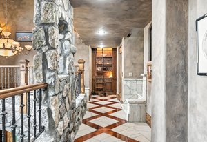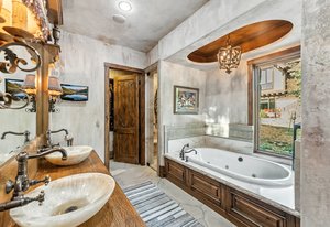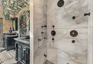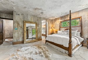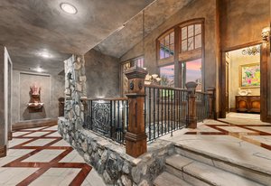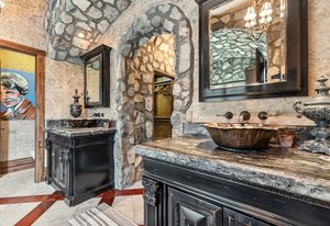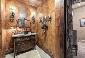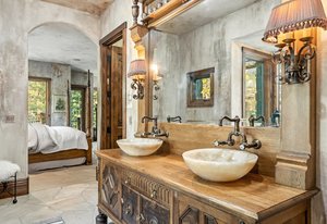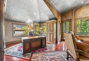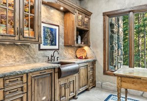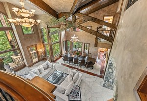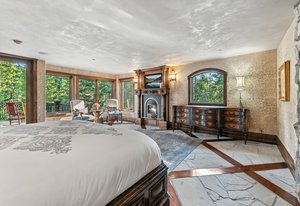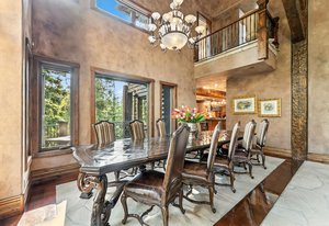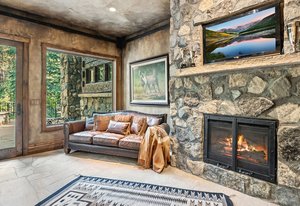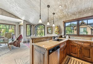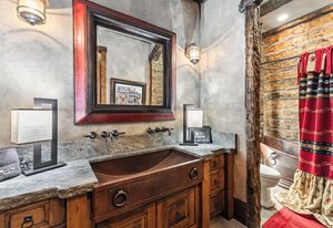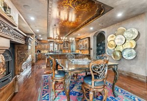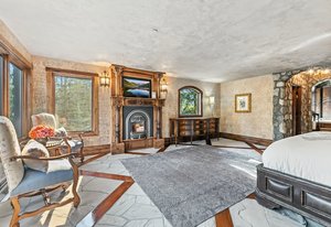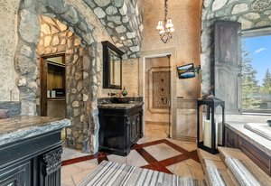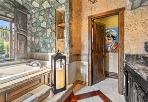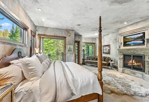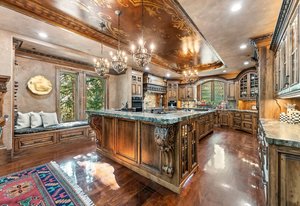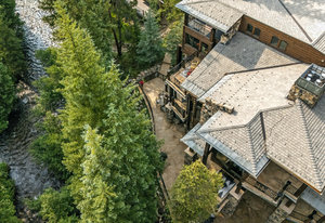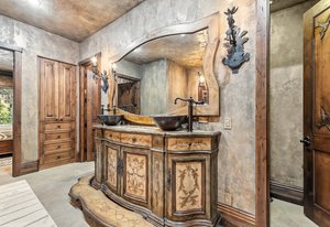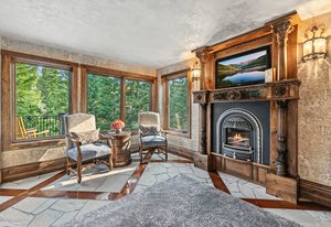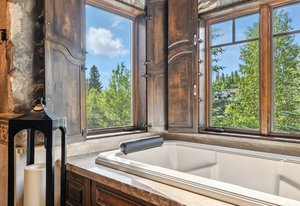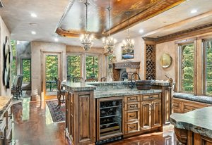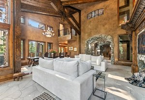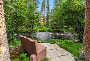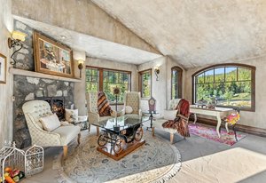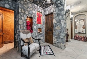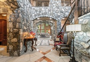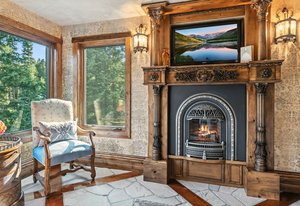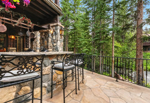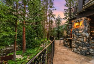 Resting along the banks of the Blue River and just moments from downtown Breckenridge, The Castle on the Blue is a one-of-a-kind European-inspired estate that seamlessly blends the elegance of Old-World architecture with the warmth of Western living. Completed in 2009, this architectural masterpiece offers an unmatched level of craftsmanship, design, and natural beauty. Step through one of the hand-carved 8-foot wooden doors into a home where every detail has been carefully curated—from locally hand-hewn timber beams and river rock construction to hundreds of lights subtly embedded in stone archways. The home’s timeless design features 13 unique fireplaces sourced from Spain, France, New York, New Orleans, and beyond, all set atop mesquite-inlaid stone and rare hardwood floors imported from Argentina. The award-winning, native-landscaped grounds surround the estate with sculpted gardens, winding stone paths, sculptures, and tranquil seating areas along the river. Every en-suite bedroom opens to its own private deck with views of the river, gardens, or surrounding mountains, while spa-inspired bathrooms feature copper soaking tubs, glowing onyx sinks, antique vanities, and hand-cut stone medallions. The expansive chef’s kitchen is a work of art, highlighted by a handcrafted La Cornue black and brass range, imported copper sinks, oversized Bosch refrigeration, and a built-in Miele espresso bar. A hearth room and great room with dual stone fireplaces flow seamlessly into the dining area, anchored by a 14-seat table overlooking the river. Whether you're hosting guests in refined luxury, enjoying the tranquil sounds of the river, or exploring the storybook grounds, this is a rare opportunity to own one of Breckenridge’s most captivating and celebrated homes.