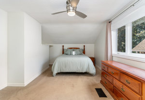 A unique third bedroom—originally a builder’s addition—is located half a level above the garage and features a large walk-in closet, making it ideal for guests, teens, or a private home office.
