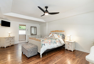 The oversized primary bedroom comfortably accommodates a king-size suite and serves as a serene retreat, complete with a spacious 4-piece ensuite featuring a soaker tub, glass-enclosed shower, and two double closets.
