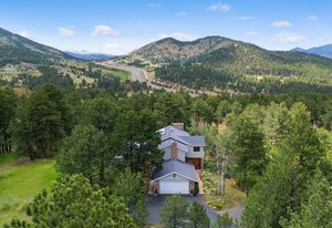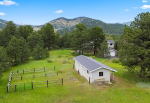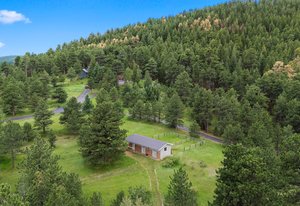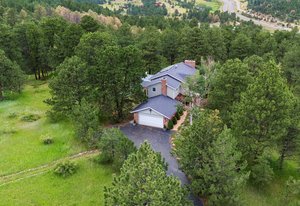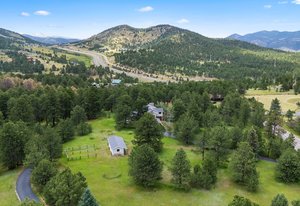 The Thulin Estate — Offered for the First Time. For the first time since its original conception in 1973, the iconic Thulin Estate is being offered to the market. Held exclusively by the original family for over 50 years, this extraordinary 4.21-acre A2-zoned horse property is a rare legacy opportunity—nestled just minutes from I-70, yet offering the serenity and privacy of a true mountain retreat. Flat, usable land is ideal for equestrian living or simply enjoying the Colorado outdoors. With city water, fencing, and a two-stall barn in place, the property is ready to be transformed back into the horse haven it once was. Nearby trails and open skies add to the appeal. The classic two-story brick home is thoughtfully designed with four spacious bedrooms and four bathrooms. A desirable main-floor home office provides work-from-home flexibility or could serve as a 5th bedroom. The upper-level primary suite is a luxurious escape, featuring a large five-piece bath and a generous walk-in closet. A sun-filled, oversized sunroom invites year-round relaxation with sweeping views of the surrounding landscape. Tasteful updates, granite countertops, main floor laundry convenience show the thought that went into designing this home from scratch. An easy, flat driveway ensures all-season access, and the expansive layout offers room to grow, update, or simply enjoy as-is. This is a truly special offering—where legacy, land, and lifestyle converge in perfect balance. The barn boasts two stalls, tack room and an automatic water for the horses. Welcome to the Thulin Estate and your next home.