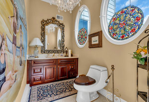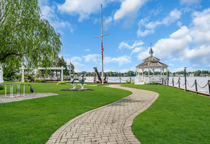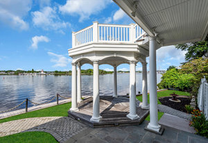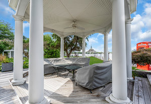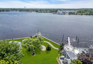 Outside, enjoy multiple tiers of decks and balconies, two gazebos by the water, and a spacious dock with bulkheading—perfect for boaters and water enthusiasts. A rare architectural gem, the spiral staircase imported from the Eiffel Tower adds both charm and conversation-worthy character, elegantly connecting the exterior to the upper level. The grounds are beautifully landscaped with vibrant perennial gardens and feature a paver driveway, an attached two-car garage, a detached one-car garage with electric, and a generously sized garden/storage shed.