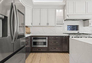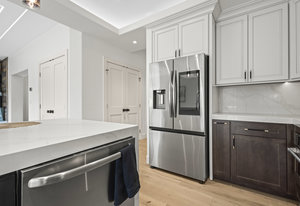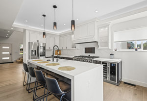 The main floor and upper levels were refreshed in 2025 with new white oak flooring, interior and exterior doors, and modern window treatments, giving the home a bright, cohesive feel. The kitchen, seamlessly connected to the living area and outdoor BBQ deck, is truly the heart of the home—ideal for both casual nights in and entertaining.