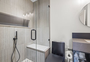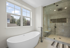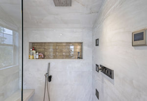 For wellness and relaxation, the spa-inspired steam shower installed in the newly updated primary bath.