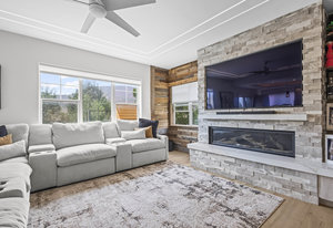 Enjoy premium touches throughout, including a 48'' gas cook top, a Trex deck for low-maintenance outdoor living, and a luxurious Heat & Glo linear gas fireplace that anchors the living space with warmth and style.