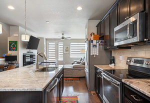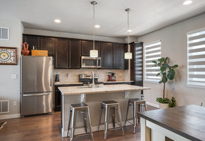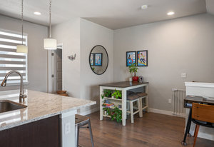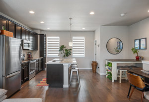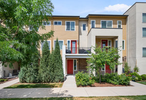 Premier location in Littleton Village! This stylish urban townhome provides two bedrooms, three bathrooms, two private outdoor spaces, a two-car attached garage, and numerous upgrades. From the ground-floor covered patio, step inside to a spacious entry with a closet and bath. Upstairs, the main level features a gourmet eat-in kitchen, great room, and balcony—perfect for grilling or entertaining. The kitchen features rich cabinetry, slab granite countertops, large center island, and stainless appliances. The upper level delivers a primary bedroom with en-suite bath and walk-in closet, a secondary bedroom, full bath, and a laundry closet. Additional highlights include beautiful southern exposure, wood flooring throughout, custom closets and pantry, designer window treatments, and a convenient water hookup in the garage. Enjoy sidewalks and green space right outside your door, or head to the community park, playground, trails, retail, and dining nearby. A perfect blend of location, comfort, and amenities—all at an affordable price!