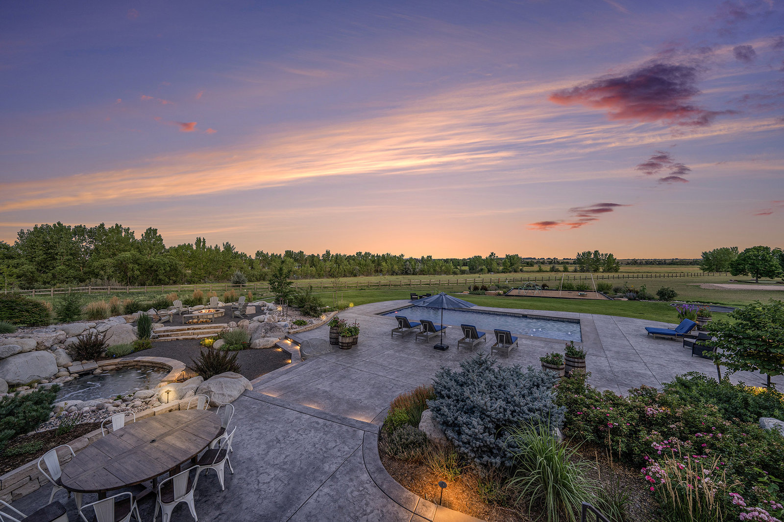 Experience the art of living well in this 12,000 sq ft custom estate, perfectly situated in one of Fort Collins’ most coveted enclaves. Nestled on 2.5 acres backing to Fossil Creek Reservoir Natural Area—an Audubon-designated Important Bird Area—this home offers rare privacy, sweeping lake views, and an intimate connection to nature. Outdoors, enjoy a resort-style saltwater pool with lap lane and sun shelf, an 8-person hot tub, multiple patios for lounging and dining, plus an orchard, greenhouse, and raised garden beds. Inside, elegance meets comfort with soaring ceilings, rich millwork, and inviting spaces for grand entertaining or quiet evenings. A chef’s kitchen with ...